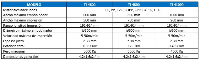 - Levantamiento y baja de cilindros neumáticos de impresión, mezcla automática de la tinta después del ascender.