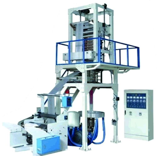 La máquina toma el HDPE o LDPE como materia prima, a través del calentamiento, extrusión, soplado, estiramiento, embobinador y hacer finalmente una película delgada. La película plástica terminada es extensamente usada para bolsas de supermercado, bolsas de basura, para varios empaques plásticos, bolsas para compras, y películas delgadas compuestas.